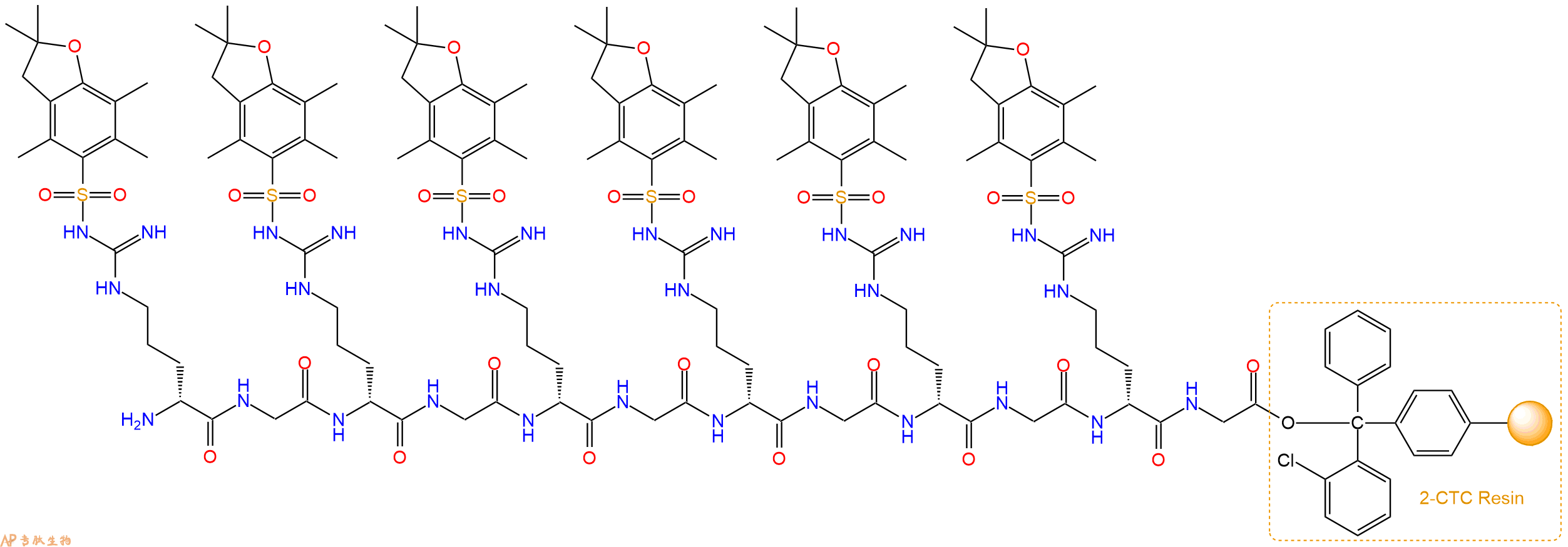 H2N-DArg(Pbf)-Gly-DArg(Pbf)-Gly-DArg(Pbf)-Gly-DArg(Pbf)-Gly-CTC Resin