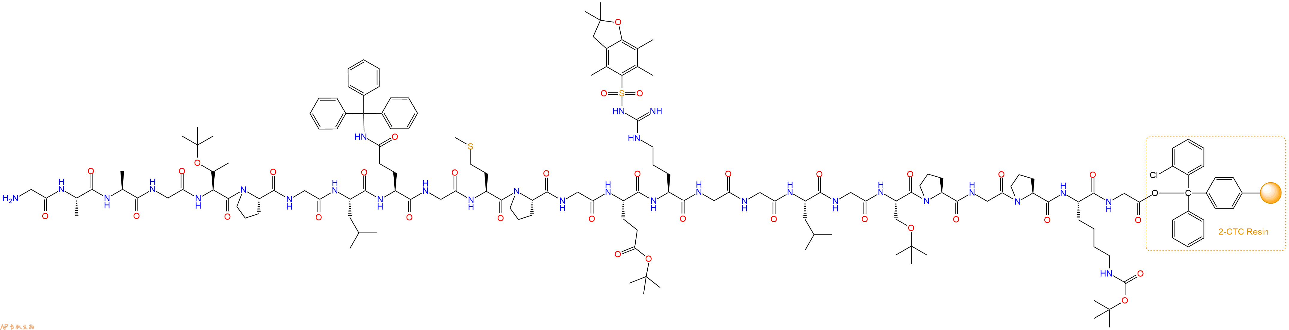 H2N-Ala-Ala-Gly-Thr(tBu)-Pro-Gly-Leu-Gln(Trt)-Gly-Met-Pro-Gly-Glu(OtBu)-Arg(Pbf)-Gly-Gly-Leu-Gly-Ser(tBu)-Pro-Gly-Pro-Lys(Boc)-Gly-CTC Resin