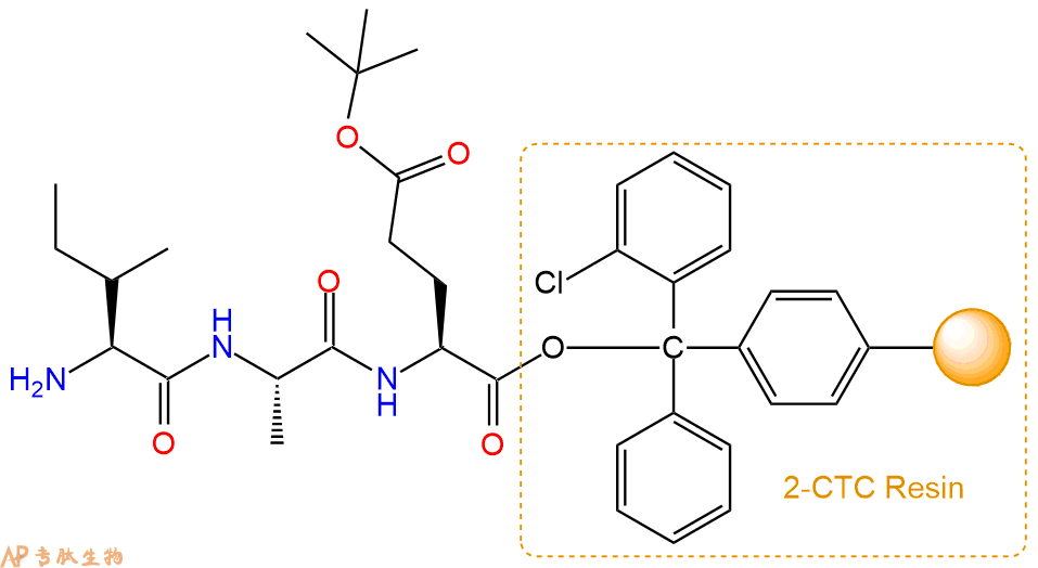 最后再经过步骤二得到 H2N-Ile-Ala-Glu(OtBu)-CTC Resin,结构如下: