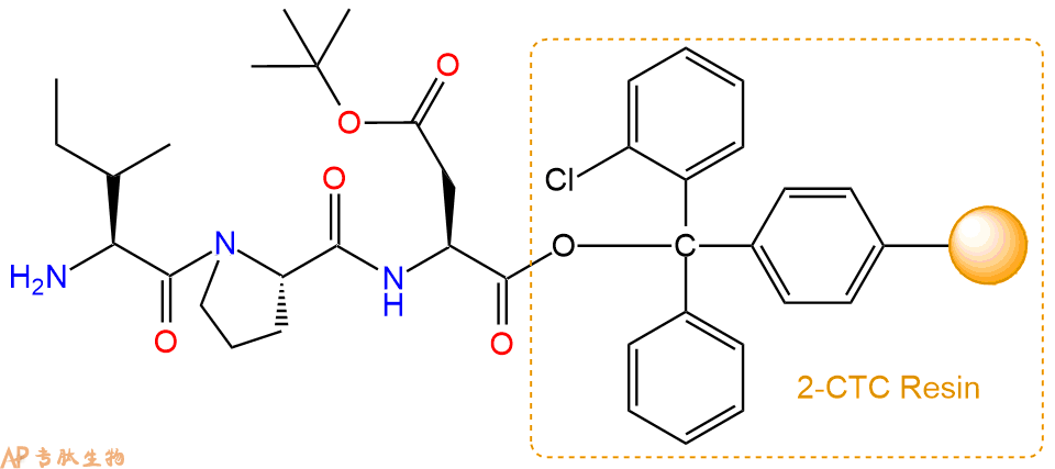 最后再经过步骤二得到 H2N-Ile-Pro-Asp(OtBu)-CTC Resin,结构如下: